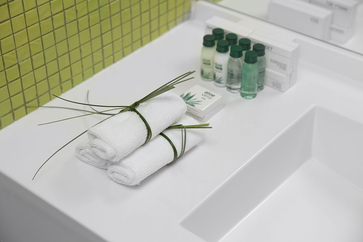 - bathrobe, slippers, and a set of towels;